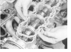 2 With the camshaft removed, examine the bearings for signs of obvious wear and pitting. If evident, a new camshaft housing will