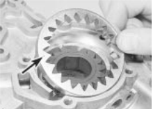 22.10a Oil cooler adapter (arrowed) above oil filter