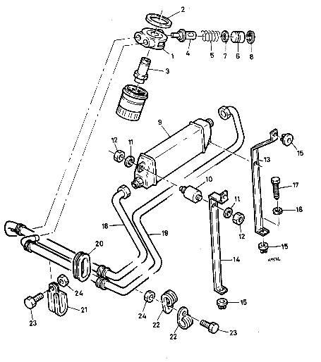 0 The lubrication system of some larger engines incorporates an oil cooler. Oil leaves and returns via an adapter mounted between the oil filter and its housing (see illustrations . The adapter contains a thermostatic valve which prevents the oil from circulating in the cooling circuit until it has warmed up. The oil cooler itself is mounted in front of the radiator.