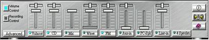 Line-in/Rear: Controls the audio hardware's Line In or Line Out levels. Line levels might be for an externally attached cassette player, for instance, while the four speakers mode is enabled, this control becomes the Rear speaker volume control.