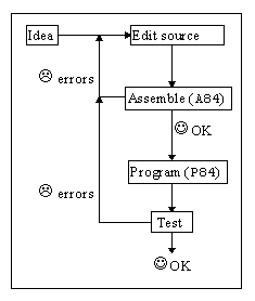 Thus into this void, out of necessity for an assembler I could trust and understand, I wrote my own specifically for the PIC16C84. Even now that other reliable assemblers are available it still makes sense to make this assembler available. The other assemblers are packed with features and are general purpose, covering the entire PIC range, thus they are often difficult to learn and the support for PIC16C84 specific features might not be directly built in.