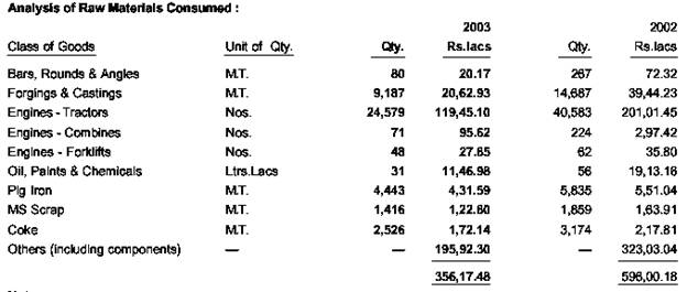 Raw Materials: The following table shows a detailed analysis of raw material consumption during the financial year 2003-2004.