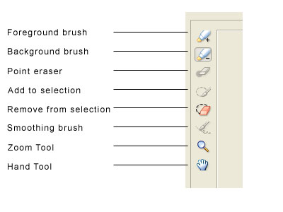 From the Image menu, select Magic Extractor. The Magic Extractor window is displayed. The following example shows the tools in the Magic Extractor window: