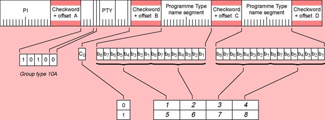 A new feature for the United States will be the Programme Type scanning feature. PTY information will allow a user to seek his favorite programme format, such as a particular type of music. Since US broadcasting differs in content, a new Programme Type list of 24 items was created (see Table 1). The US broadcasters are very sensitive to the programme type name shown on the receiver. Therefore, the Programme Type Name (PTYN), Group type 10A (see Fig. 2), was also defined. The default eight-character name should be shown during the scanning process. Once the receiver stops on a station with the default PTY category, a more specific PTY identifi- |