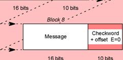 To receive RDS information from stations that time-multiplex RDS and MMBS information, receivers should recognize offset word E=0 (all zeros). Current receivers that flywheel through E words (even if they are seen as errors) will work with no modification. However, improved performance will be obtained with recognition of the new offset word. The MMBS information (blocks with E offset words) will be time-multiplexed into the RDS data stream in modulo-4 multiple blocks. Thus, between RDS blocks with offset words D and A, could occur 4, 8, 12, ... MMBS |