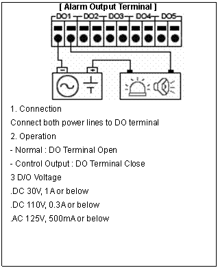 - Alarm-Out : sends digital outputs (alarm, lamp and so on) checked upon DI event