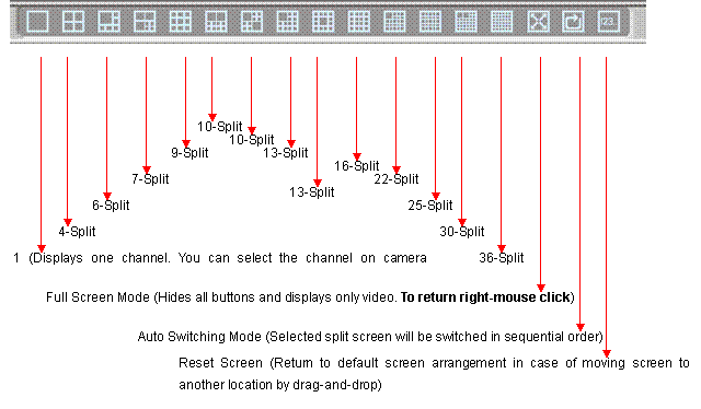 - Full Screen Display : displays one full screen of the camera view with motion event