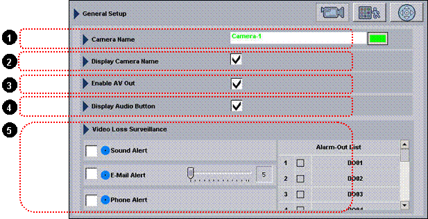 6. Display RX Button : Check on the box to display the pan/tilt icon on the camera view.