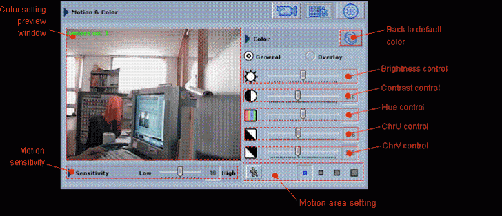 area setting : Click motion area setting button [ ] and select the size of brush [ ]. Then drag the brush on the