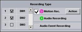 Checking on Audio Recording will enable recording sound from microphone. Checking on Audio Event Recording will trigger recording when audio event happens.