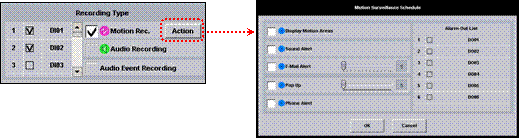 - Alarm-Out : sends digital outputs (alarm, lamp and so on) checked upon motion event