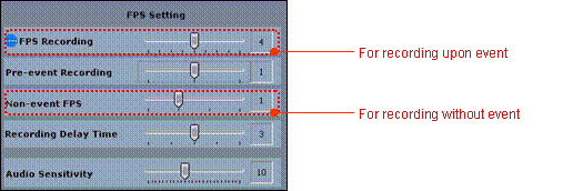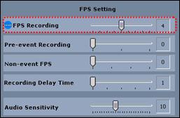 If you check on Motion Recording or DI nos, set frame per second for event recording on FPS Recording slide bar and set non event frames on Non-event FPS slide bar.