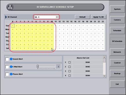 DI Surveillance Setup mode allows you to set DI surveillance schedule for each DI.