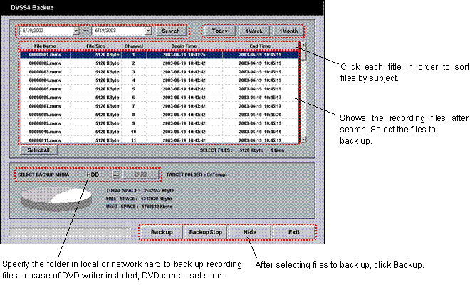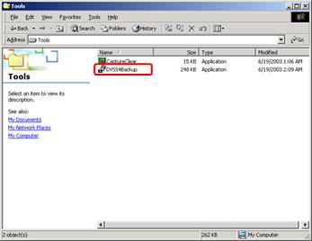 Run "DVSS4Backup.exe" in "C:\DVSS4\Tools" folder in order perform backup manually.