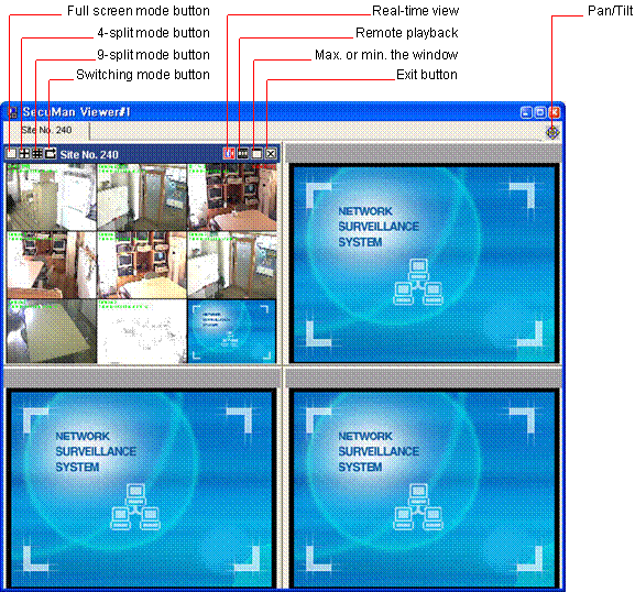 SecuMan is a new and advanced central station program which enables real-time monitoring, remote playback, remote menu setup and event monitoring/instant action to multitude of remote DVRs through internet.