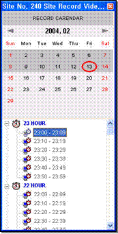 To retrieve the recording files on remote site, click "Remote Playback Button" on the right top of site view window. Then the box with recording date and time information will pop up as below. Select the hour and double-click.