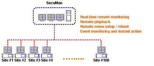 In order to view the video from remote sites after connection, use "Manage Video Tab" of SecuMan or use the menu after right-mouse click on the group or the site.
