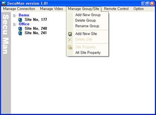In order to add new group or new site in the group, use "Manage Group/Site Tab" of SecuMan or use the menu after right-mouse click.