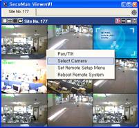 5) Select Camera : You can select the camera channels that you want to view only from remote site. Right-mouse click on the site and select "Select Camera". Then check on camera no. that you want to view only as shown below. Or right-mouse click on site viewer window and select "Select Camera".