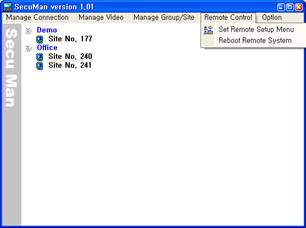 1) Set Remote Setup Menu : Right-mouse click on the site and select "Set Remote Setup Menu" . Then setup menu of the remote system will pop up.