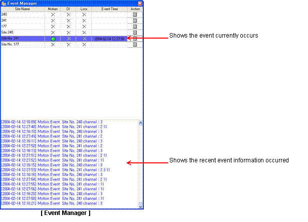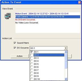 You can carry out real-time event monitoring and take intant action by sending beep sound, digital output to remote sites to warn them. Select "View Event Viewer" from "Option Tab" of SecuMan.