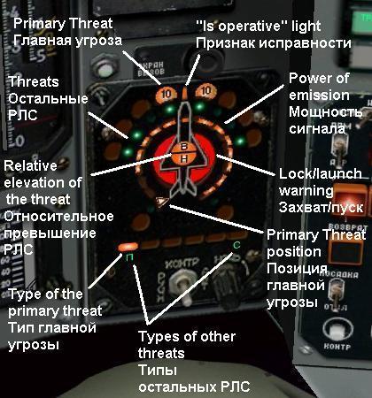 "Relative elevation" lights, "power of emission" gauge lights and "Lock/Launch" lights are intended to show particular parameters only for the current primary threat.