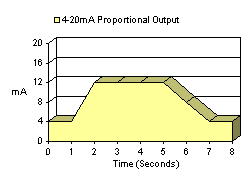 Proportional output values between 4 or 8mA and 20mA can be used to provide an early warning of fire. These values hold only for 3 seconds from the last flame sighting. See Fig. 6