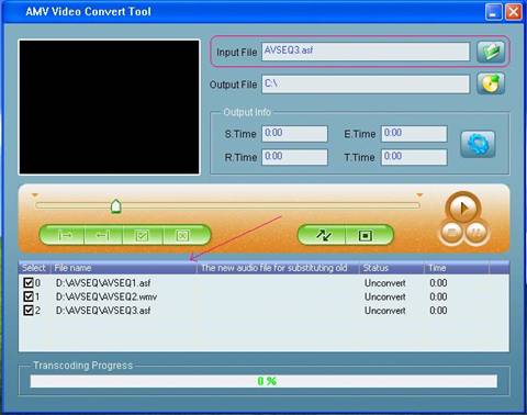 AV file name. The new selected AV file would be defaulted as "√" in the checkbox. If