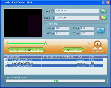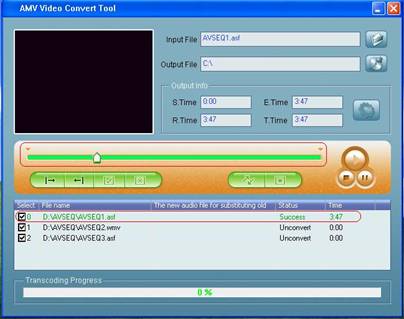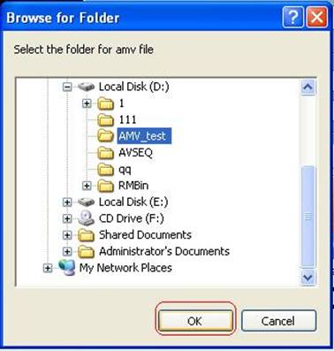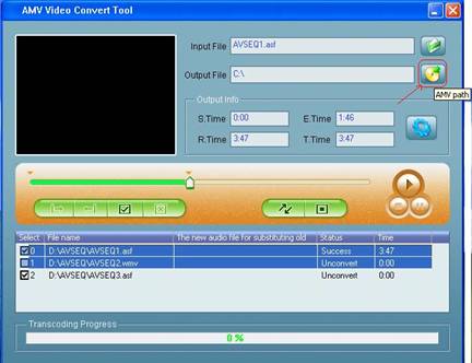 After finishing above steps, "Output File "box will display AMV file saving road in detail.