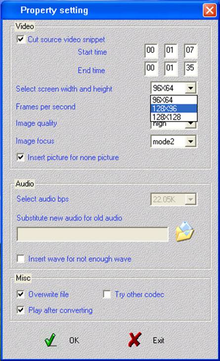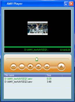 There're two pixels ( 96*64,128*96 pixels ) of AMV video file. Please select the length and width according to MP3 player screen size. The screen display as following: