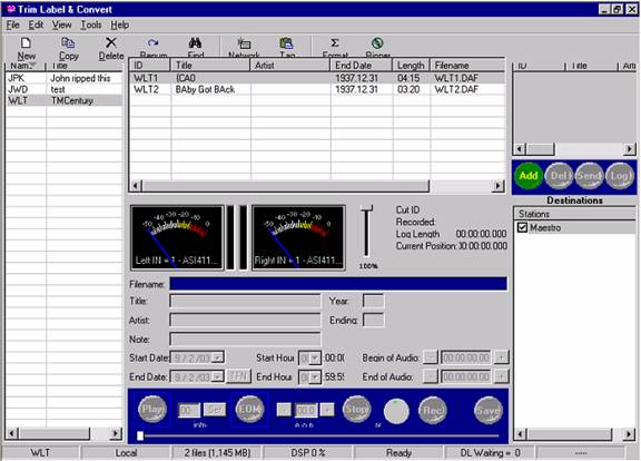 TLC (Trim, Label, and Convert) is a CD track ripper and WAV/MP3 file converter used by both Computer Concepts Corporation and Scott Studios. This document covers operation with Computer Concepts Maes 313v2122d tro only. Maestro users can select and rip CD tracks or convert WAV and MP3 files to MPEG II, PCM or APT-x (optional) audio files with compatible 1.3 version DAF headers. You can set cart ownership and distribution within TLC and send the information to Maestro although the two programs do not interact with each other.
