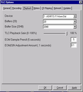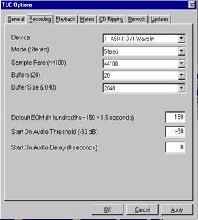 You may wish to modify "Default EOM". EOM in TLC is the same as AUX mark in Maestro. The Default EOM setting places a Aux Mark by default at the prescribed time on ripped and converted audio. Some stations find it helpful to increase the Default EOM if they are primarily using TLC to rip music from CD.