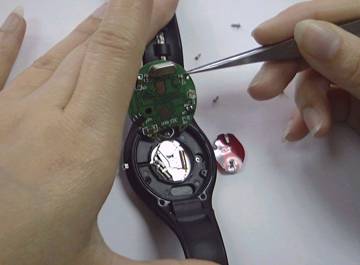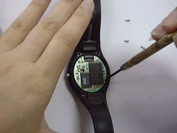 Remove the red insulator and replace the battery, screw back the CBA first and then the case back