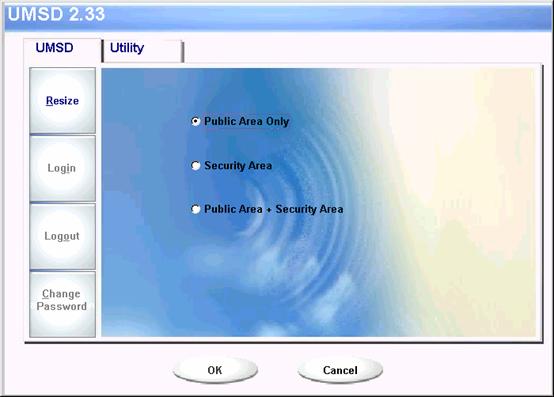 Click the Resize button in the UMSD manager window. The following "Resize Partition" window will pop up.