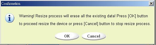 By default, the device is non-security. So, the "Resize" function will be active when you run this software first time.