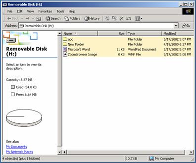 After you finished the program, you will see different disk property when you select different disk type. For example, if you select it as "USB HDD", you will see the hard disk icon in the file manager window. If you select it as "USB ZIP", you will see the removable disk icon in the file manager window. However, only Windows 2000 and above can identify the difference. In Windows 98, you just can see the "Removable Disk".