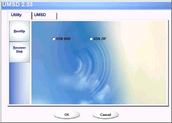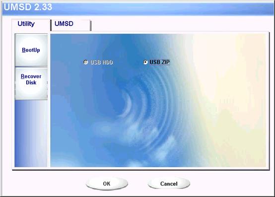5). Click on the [Utility] button in the UMSD manager window. Then, select the USB ZIP. Click on the "OK" button.