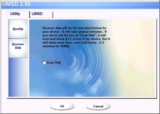 1). After you click on the [RecoverDisk] in [Utility] portion of UMSD manager windows, the following window will pop up.