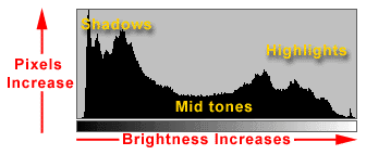 One reason to check a histogram is to see if there is enough detail in the shadow, midtone, and highlight areas. If there is enough detail, even if the image is somewhat off, it can be corrected in a program such as Photoshop using the Levels command or in Picture Window using the Brightness Curve. These controls allow you to adjust the shadow, mid, and highlight areas independently without affecting the other areas. This lets you lighten or darken selected areas of your images without loosing detail.