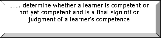 The procedure whereby a learner's competence is assessed either in terms of: