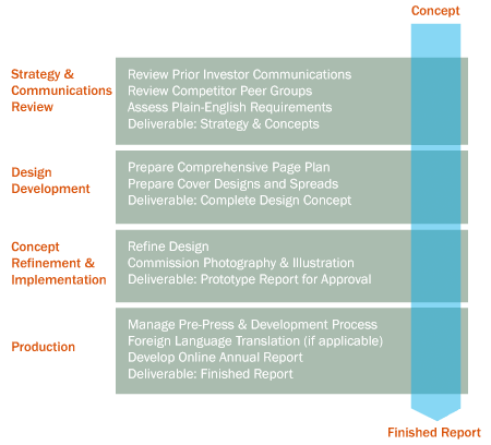 Over the succeeding years, many of our corporate annual report clients began to request our business and creative expertise for new and broader communications challenges, such as branding and identity work. As our clients' businesses changed, so did we.