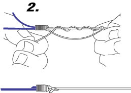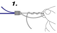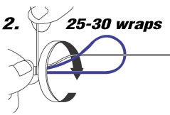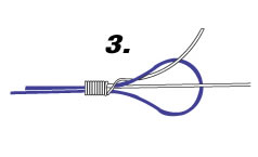 1) To lock the knot so that the PowerPro cannot slip out, make a loop with the PowerPro tag and wrap three times around the standing line. (You are making a half hitch with two extra wraps). For a smaller lock, back wrap the loops towards the Albright before tightening.