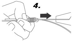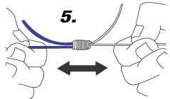 3) After completing the wraps, insert the PowerPro tag back through the monofilament loop so that it exits on the same side of the loop it entered. Wet the PowerPro, and pull simultaneously on the standing line and tag end to jam the wraps together towards the closed end of the mono. Tip: Hold your forefinger against the PowerPro wraps to keep them in place while jamming the knot.