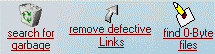 Remove defective links: This important symbol will search all links which are wrong and therefore have no function. This feature is an important one that should not be neglected. Is uses the same menu as the temporary search.