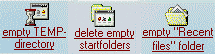 Empty TEMP-directory: This helpful button will remove all files in the TEMP-directory, which is normally C:\Windows\temp. Usually files in temp directories can be removed without risk. You should make such deletions a regular routine since it restores a lot of space...