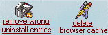 Delete browser cache: Click on this symbol and WashAndGo will delete the Internet Explorer browser cache. These files are created to get a faster access to the internet if you load a website a second time... however, these files will be automatically recreated by Explorer if necessary, so there is no risk in deleting them.