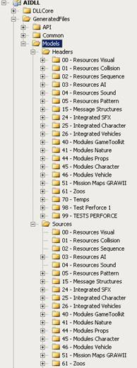 Génération ultime des sources C++ à partir des scripts. Archivage sur une base perforce dédiée F Dès lors qu'une partie des AI sont écrites directement en C++, le système n'aura plus à être exécuté directement en scripts | |