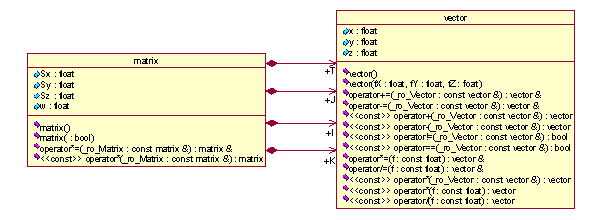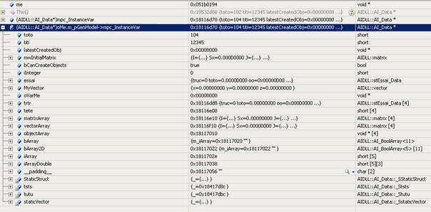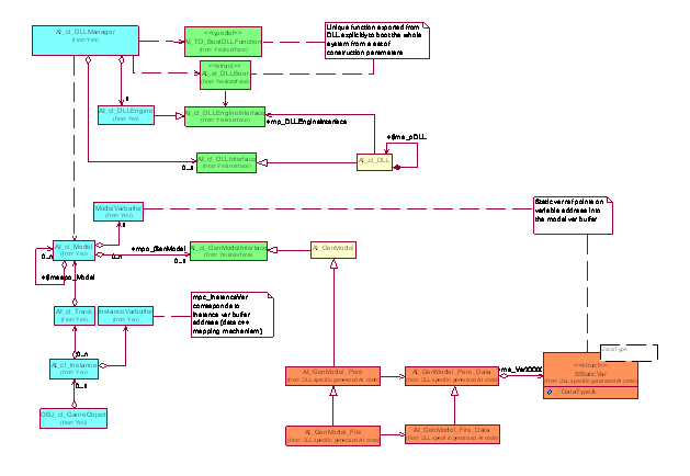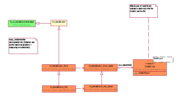 F Les évolutions futures des features du système sont simplifiées puisque les évolutions du langage n'ont plus à être répliquées dans l'interpréteur et le système de génération. Ces features peuvent tirer partie de la puissance du langage C++ et des debuggers existants. Exemple : ajouter une définition dans les fichiers .vas permettant de déclarer des pointeurs model castés dans les classes | |