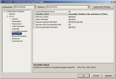 L'éditeur génère les fichiers sources correspondant aux scripts (en général un fichier .h + .cpp par modèle) ainsi que le projet Visual AIDLL.vcproj permettant de les compiler. Ces fichiers sont générés dans le répertoire exe\DLL\SRC pour les sources et exe\DLL\Make pour le vcproj.
