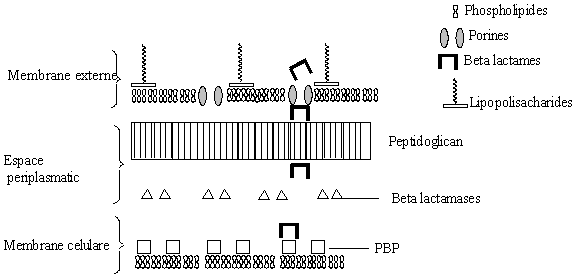 Une imperméabilisation par altération des porines se rencontre chez les Gram (-) et confère une résistance aux beta-lactames trop hydrophiles pour diffuser à travers la membrane externe (céphalosporines; pénicillines à large spectre).